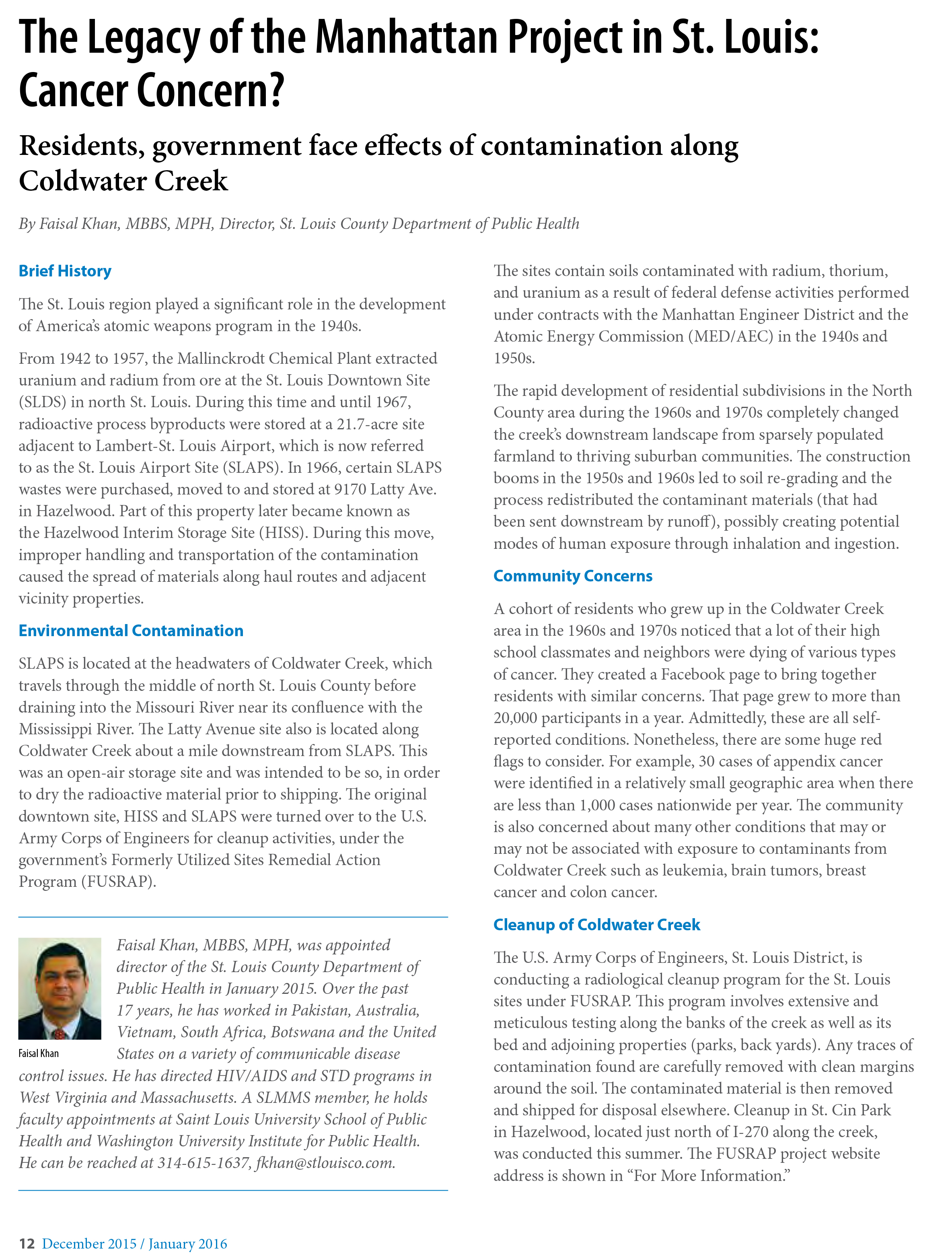 Information by Director of St. Louis County Health Department, Dr. Faisal Khan, provided at the February Cold Water Creek public meeting. (Page 1)