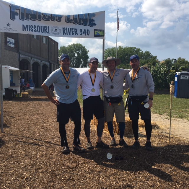 Wow! Was I proud to witness my nephews paddling into the St. Charles Landing. They were part of the flotilla that took on the “Wide Mizzourah” this week in the 340-mile endurance race across Missouri from Kansas City, known as Missouri River 340.