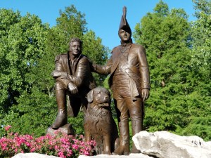 (EE Editor’s Note: The incredible bronze of Lewis & Clark and their dog Seaman is featured in “Nuts About Squirrels: The Rodents That Conquered Popular Culture” coming this spring by McFarland Publishing. The book by EE’s Don Corrigan notes Captain Lewis’s encounters with mass migrations of squirrels across American rivers, and speculates on whether more such migrations are in the offing because of climate change in North America.)