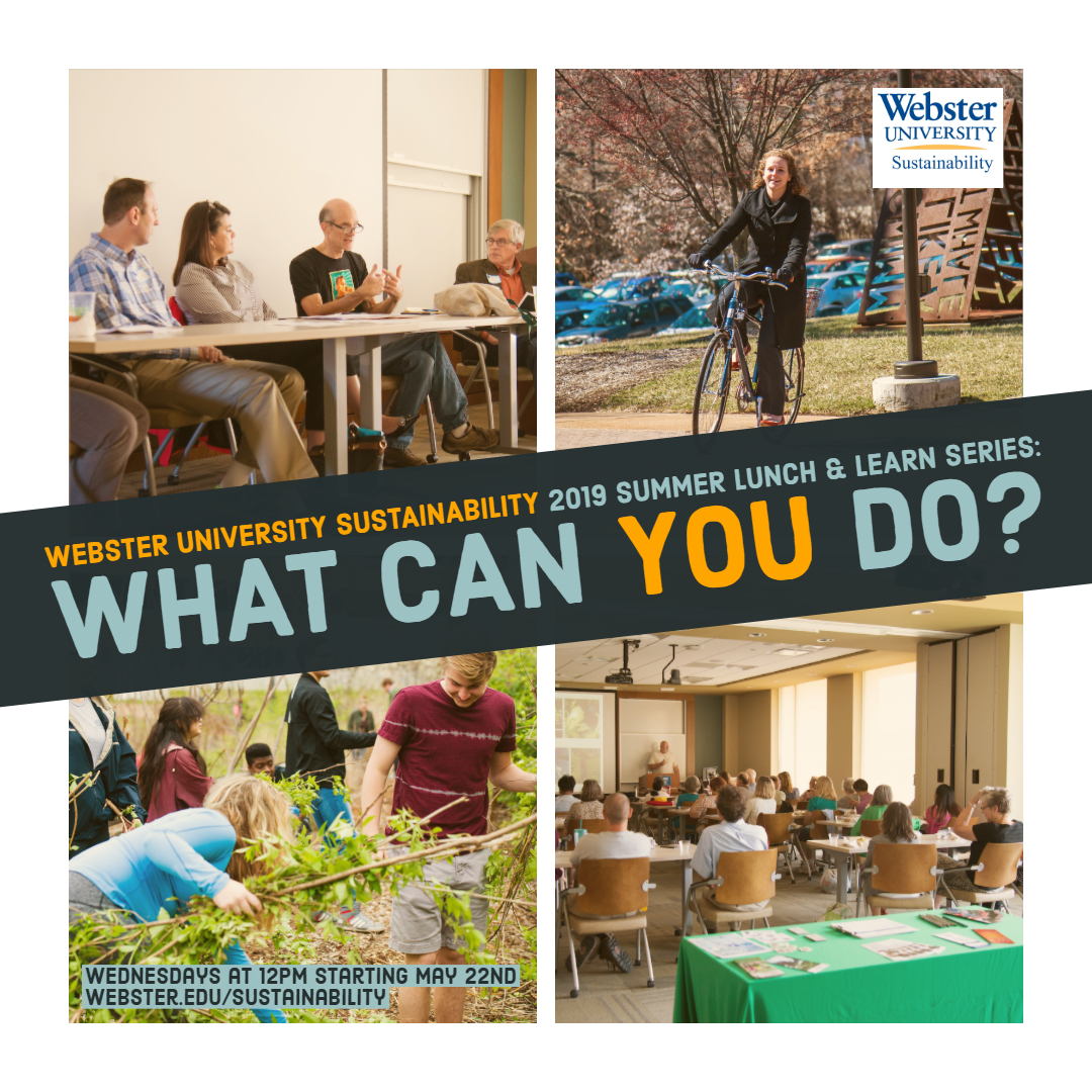 Beginning May 30, join Webster University Sustainability, Wednesdays from 12 p.m.-1 p.m., this summer to learn about the types of impact small, local actions can have toward a more sustainable future for all.