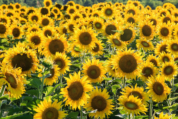 The common sunflower (Helianthus annulus) is an extremely large and showy member from the same plant family as daisies. The impressive height and brilliant yellow rays of a single sunflower are a striking sight. Uniform rows of hundreds can be positively mesmerizing. The sight has always been a popular draw for sight-seers, nature buffs, and photographers.