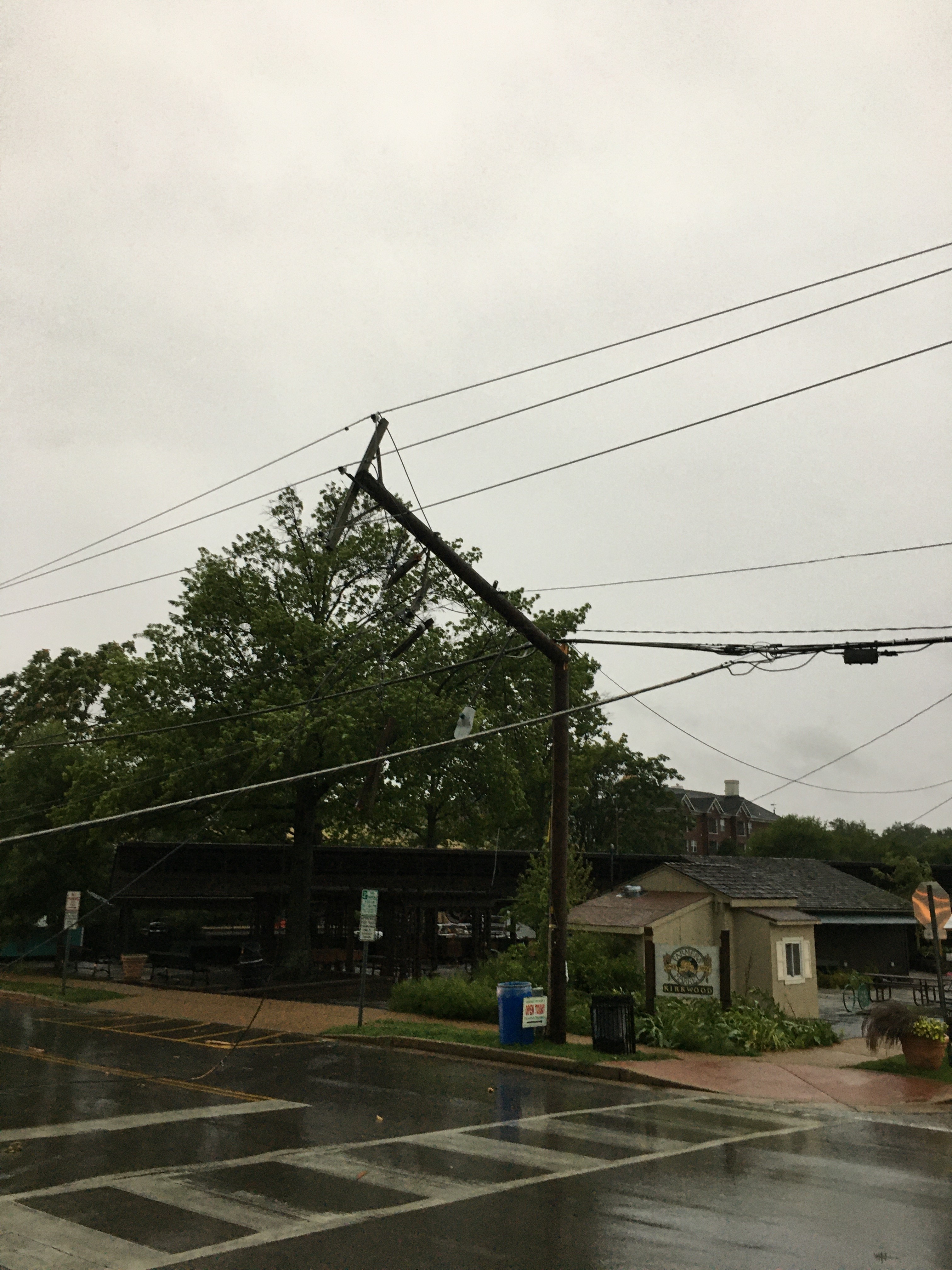 There were trees downed and power interruptions throughout Kirkwood. Some major damage was reported in the Kirkwood Farmers Market area of the St. Louis suburb.