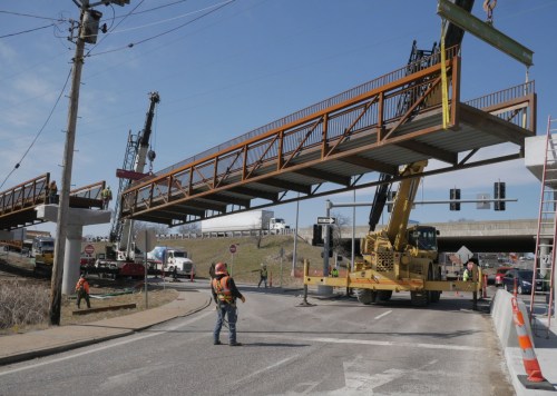 The 600-foot bridge allows trail users to connect to more than 21 miles of ADA trail. The bridge is located just south of Interstate 55 crossing the river between River City Boulevard and Germania Street.