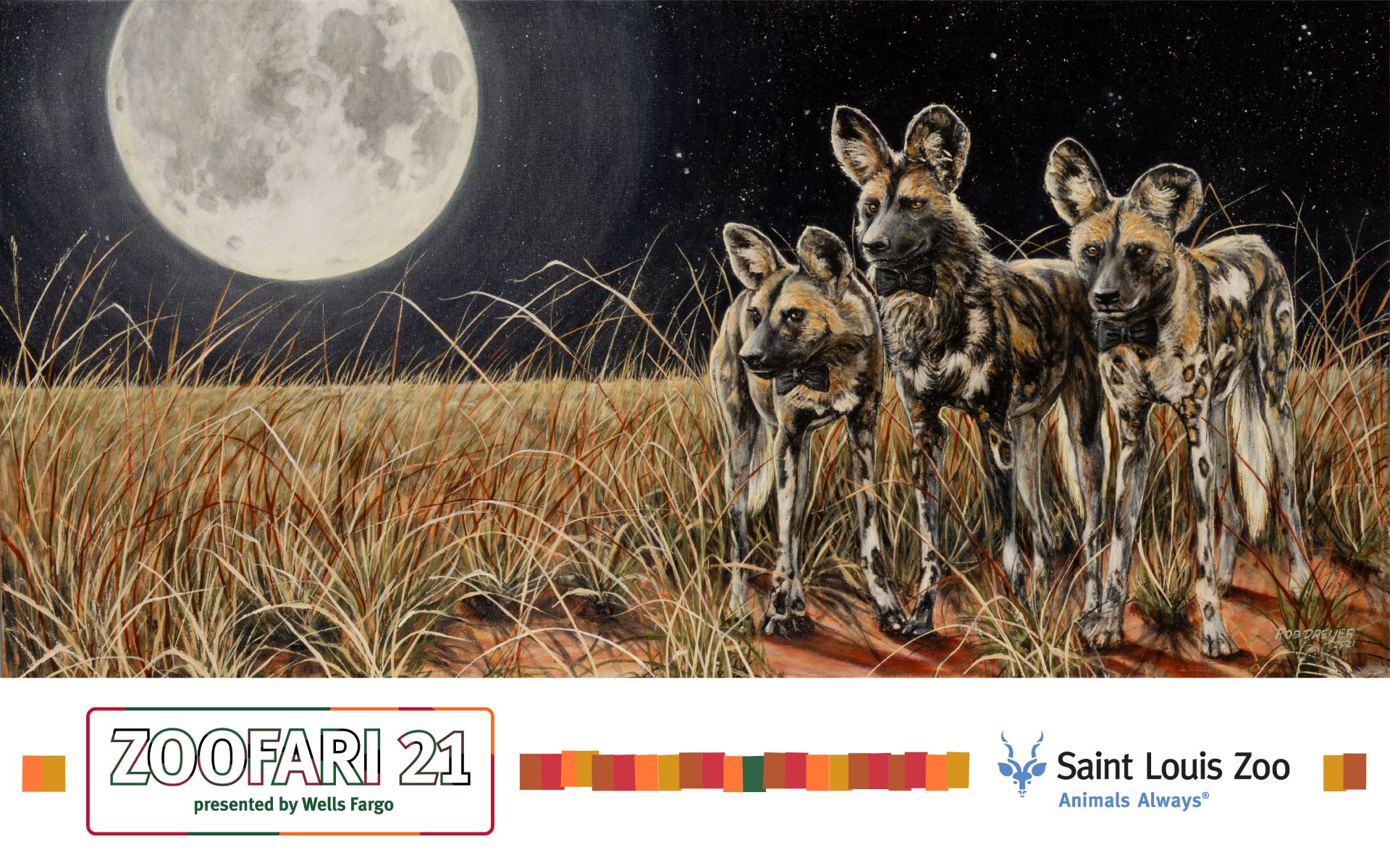 Protecting the Painted Dog: The ZOOFARI 2021 logo artwork features the African painted dog. Conflict with humans, particularly with livestock farmers, is a primary reason for large predator population decline. The Zoo supports a partnering organization that uses innovative research methods to learn more about scent marking in African painted dogs. Using artificial scent marking as a deterrent to cross livestock boundaries may be key to enabling coexistence between humans and multiple predator species.