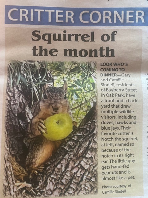 In the land of fruit and nuts, California, squirrels are front page news. Dan Burkhardt of Magnificent Missouri found this out when visiting his children recently. He was in the state that “The Arnold” from Total Recall affectionately refers to as “Caleeefornya.”The squirrel in the California newspaper, known as The Acorn, is named Notch. He gets his name from a peculiar ear that he sports. The little varmint enjoys peanuts hand-fed to him by sympathetic humans.