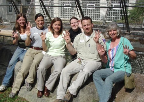 Group photo of the Saint Louis Zoo staff, USFWS, and Karen Goellner assisting with augmenting wild collected Ozark Hellbenders in the outdoor streams for captive-breeding. This was completed in the summer of 2011 and the first successful captive breeding occurred in the fall of 2011.
