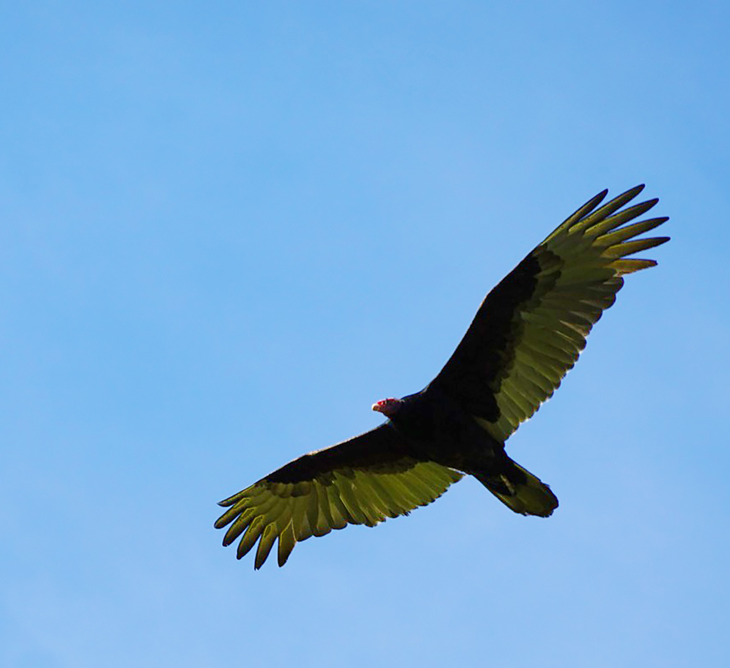 Like cormorants, turkey vultures often hold their wings half-open after feeding, and the outline of a turkey vulture against the sky shows a more bent wing outline than an eagle. Turkey vultures are considered to be the inspiration for the much-revered thunderbird in Native American iconography – not the eagle.