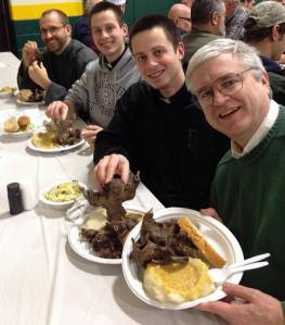 Priests and religious brothers often attend the annual muskrat dinners in Michigan, which have served more than 900 plates of muskrat on Fridays in February. (Photo by Father Tim Laboe, courtesy of Edward Peters)