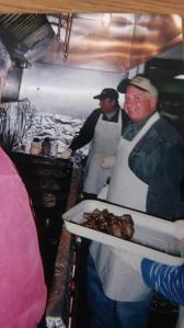 Smiles abound at the grill during a 2003 Michigan muskrat dinner. (Courtesy of Robert “Cricket” Fleming)