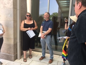 Michaella Thornton and Sean Dougherty give nature writers some instructions and encouragement before a June 10 creative writing workshop at the Missouri Botanical Garden. Photo by Jessica Brown.
