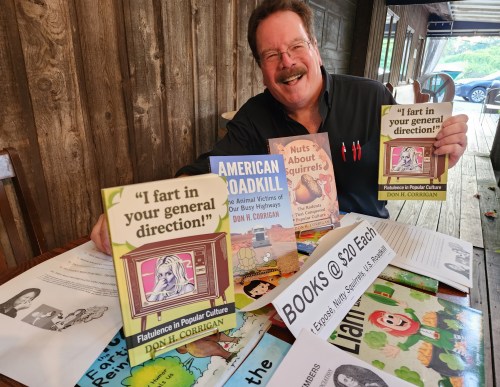 It was a warm and humid evening at Blumenhof Winery in Dutzow, MO, as Don Corrigan sat at his little table signing copies of his latest book, “I fart in your general direction! Flatulence in Popular Culture.”