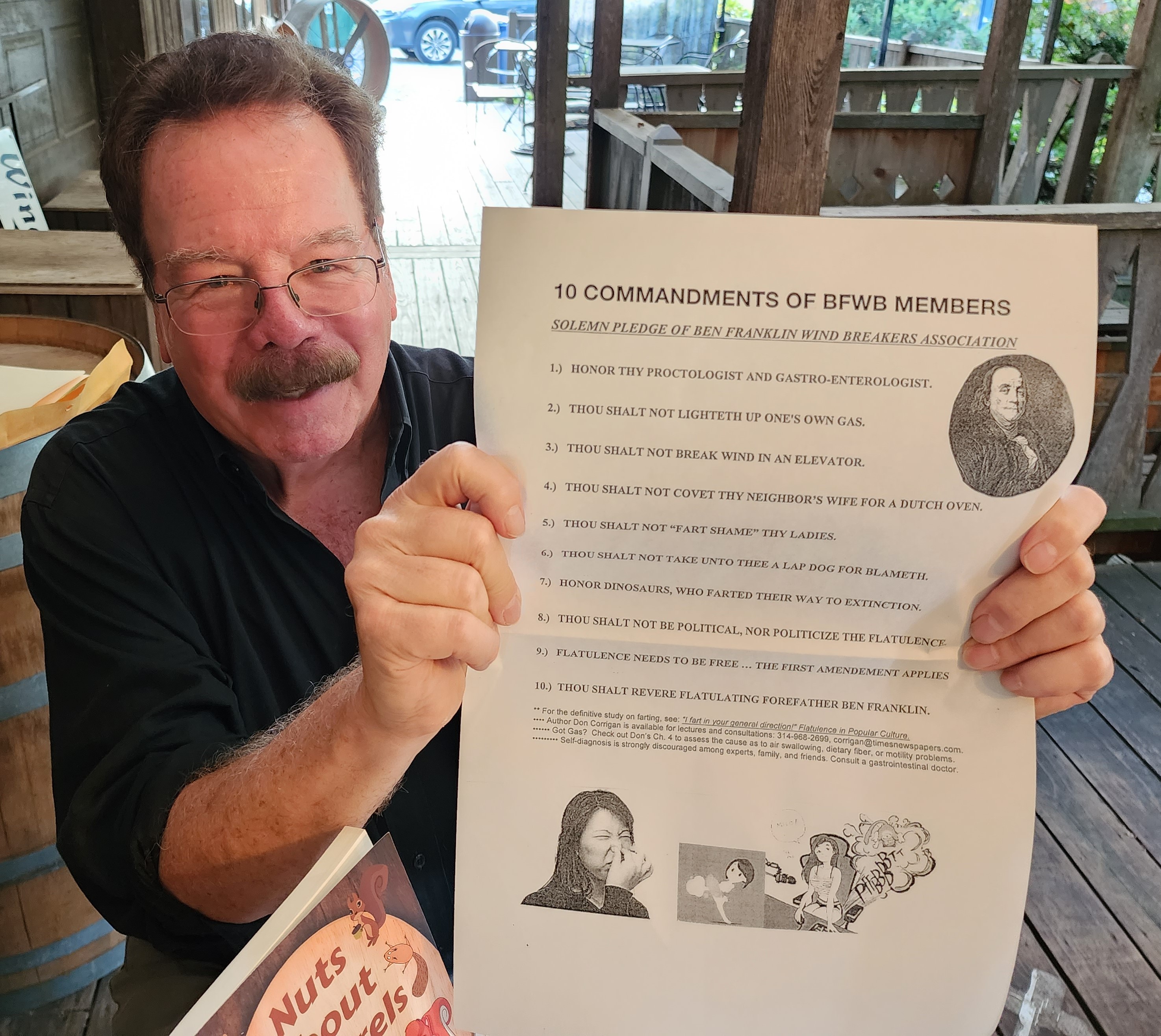 It was a warm and humid evening at Blumenhof Winery in Dutzow, MO, as Don Corrigan sat at his little table signing copies of his latest book, “I fart in your general direction! Flatulence in Popular Culture.”