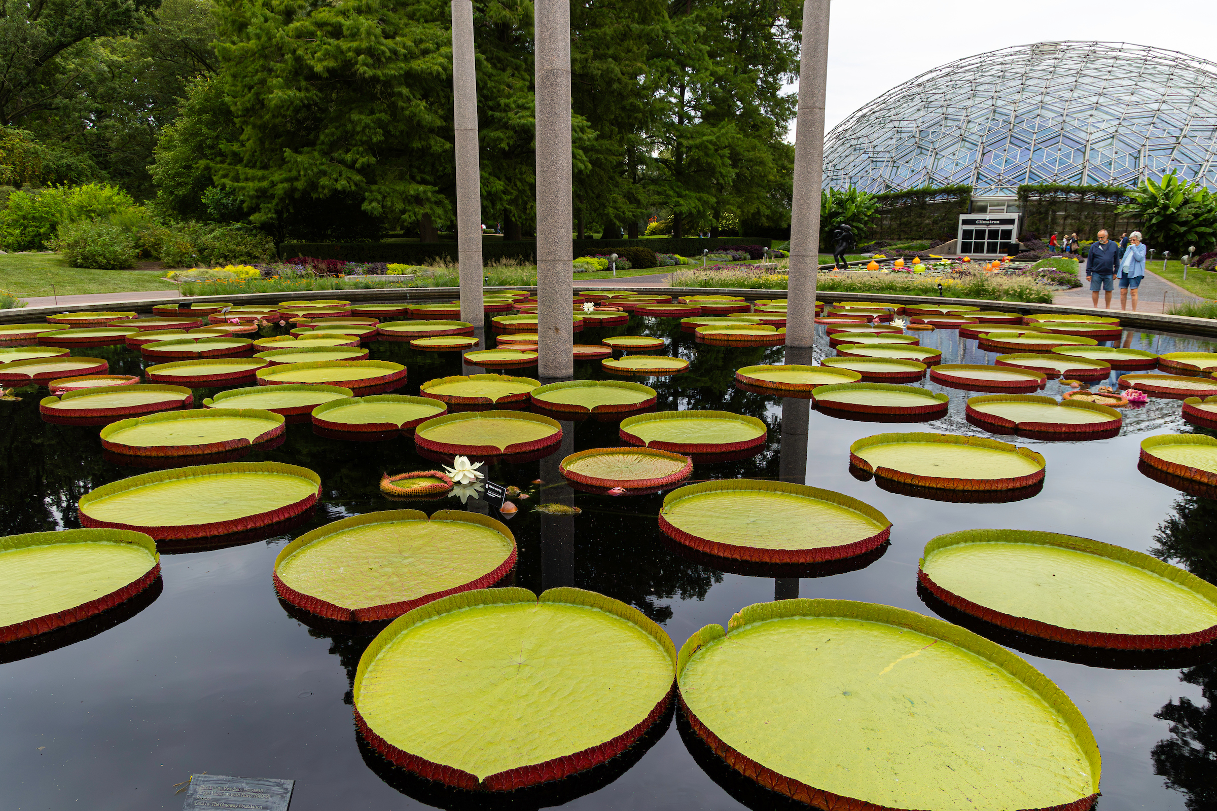 Visitors can see the impressive water lilies in the pools in front of the Climatron through the end of September.