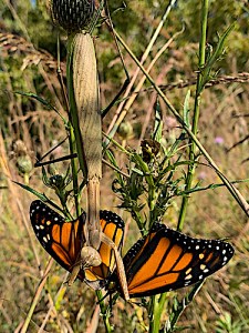 “Monarchs are having such a hard time surviving as it is, and now they have to deal with these guys,” said Peters. “These mantises are so aggressive, I have even seen them feeding on the breasts of captured humming birds.”