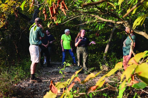 With cellphones and digital cameras at the ready, the hikers were led by Lauren Baker, a naturalist with the Powder Valley Nature Conservation Center in Kirkwood. An introduction commenced about 5:30 p.m.