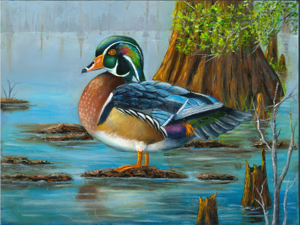 MDC is exhibiting the 2024 Missouri Junior Duck Stamp Contest entries during November at Powder Valley Nature Center. Seen here is the Missouri Best of Show entry, Wood Duck by Vivian Bashar, a senior at Nixa High School.