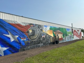 • At 9 a.m, May 31, there was a ribbon cutting in Gerald that hailed the opening of one mile of trail at the Gerald Trailhead. An impressive 100-foot mural commemorating the Rock Island Railway was visible. It is supported by local firefighters.