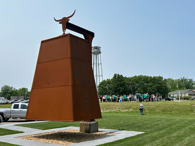 One of those local communities is Belle, where Jimmy Zumwalt and his family reside. They are responsible fopr the world’s largest cowbell, right next to the trail. Zumwalt’s feed mill is one of the oldest buildings in Belle, and was the location of the 1 p.m. ceremony.
